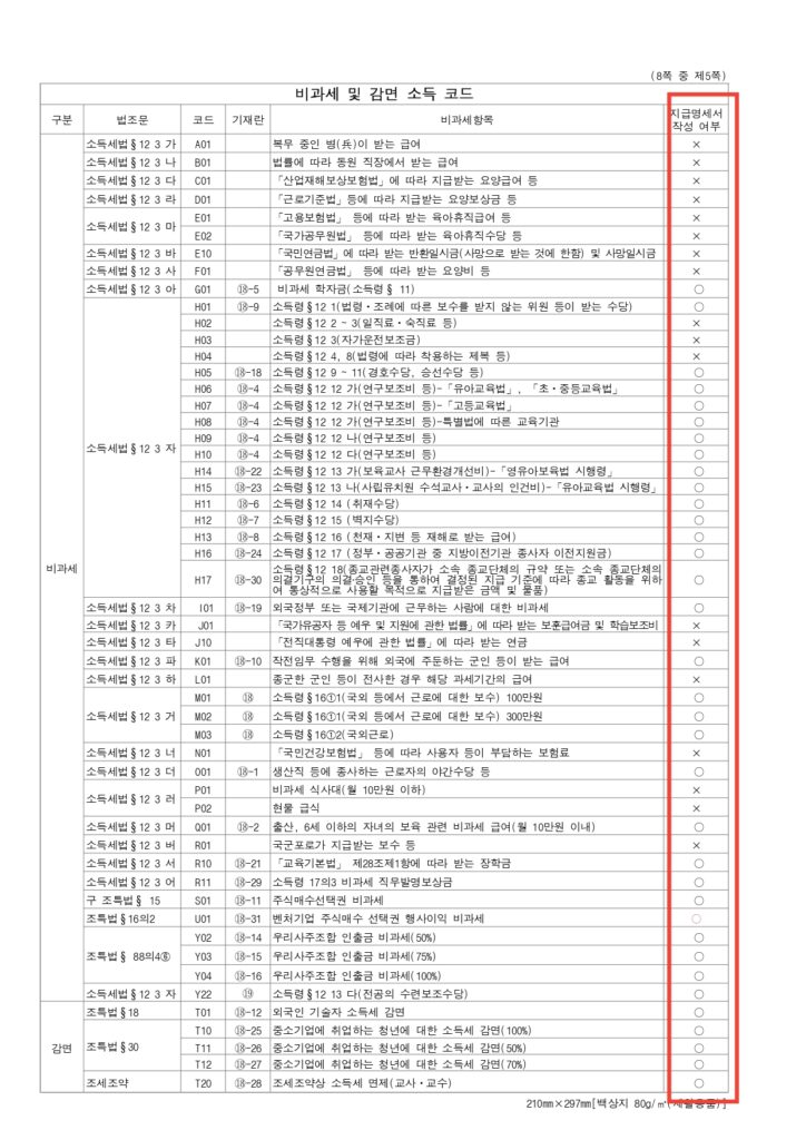 📋 [실무 체크] 주요 비과세 코드표