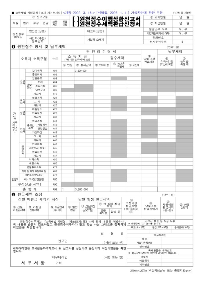 - 작성 원칙: 원천징수이행상황신고서의 ‘총지급액’과 개념이 동일합니다.
